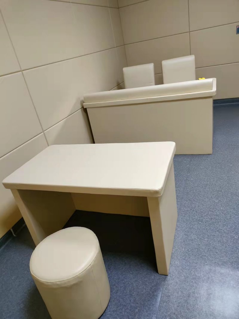 另外,談話室還應(yīng)配備防撞臺面桌椅,均用新型防撞材料軟包處理, 門邊都須是軟質(zhì)條子包裹, 門把手須是